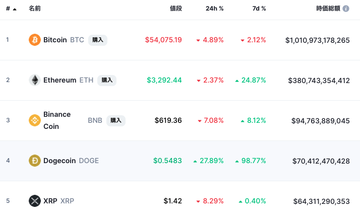 代表的なミームコインの例