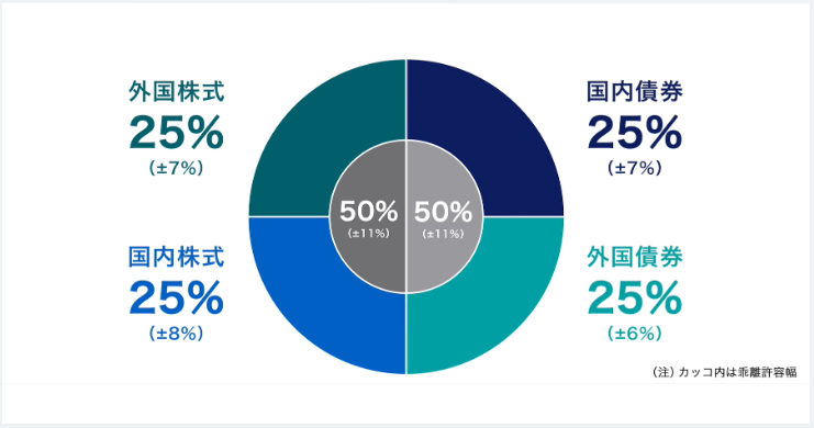 現役世代よりも、リスクをおさえるために債券の割合を大きくしています。