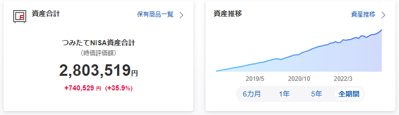 私はつみたてNISAを6年やっていて、70万円程の含み益が出ています。